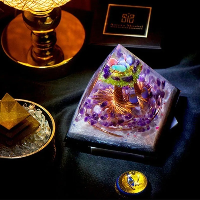 AURA REIKI Tree Of Life Orgonite Large Pyramid Improves Overtime And Night Decorations Absorbs Dirt