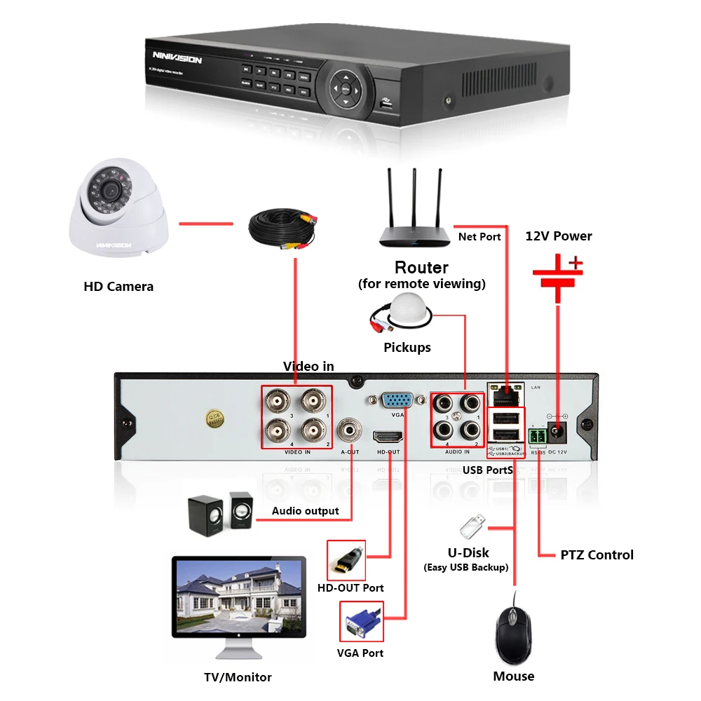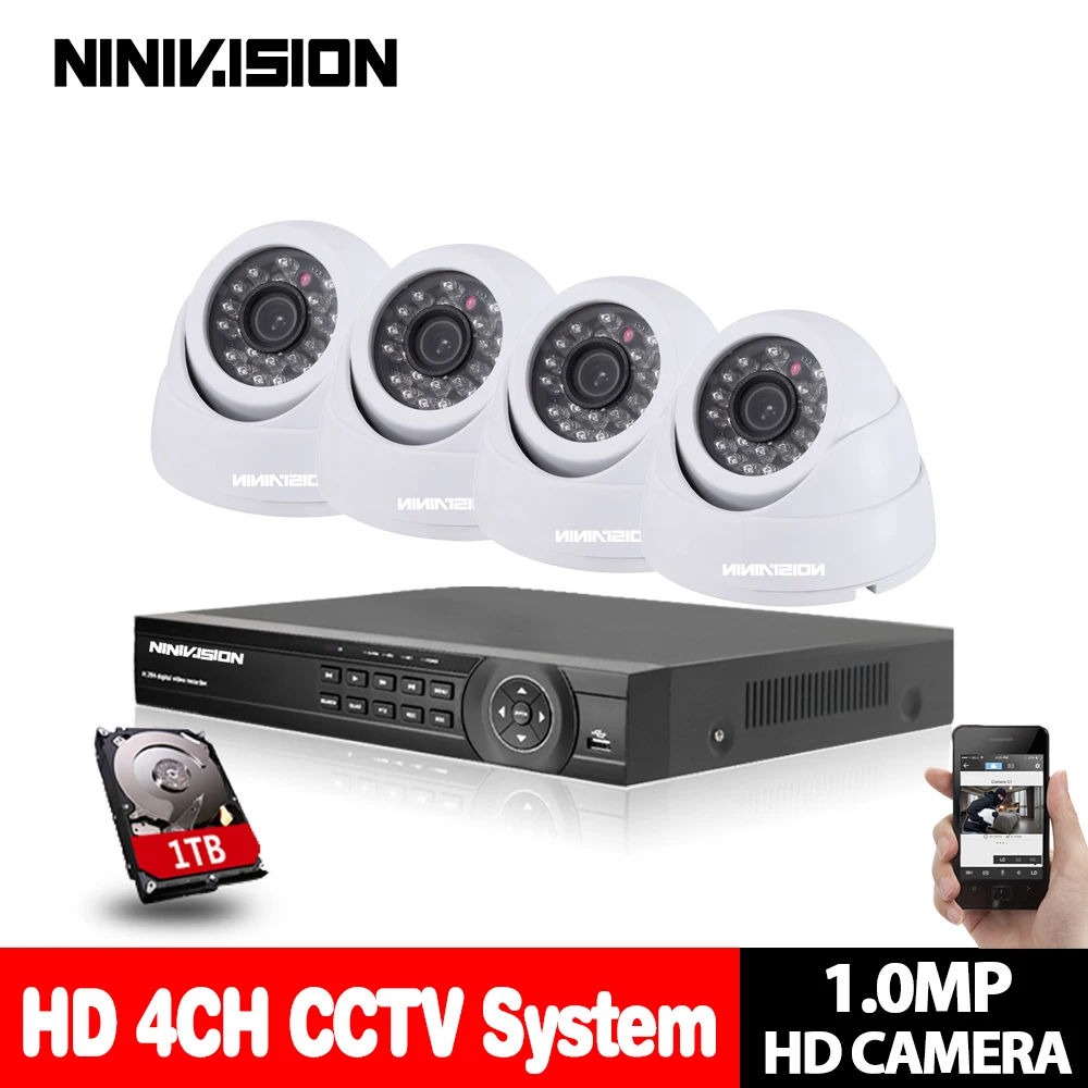NINIVISION 4CH 1080P Output Supported DVR indoor 720P 1.0MP Night Vision Camera CCTV System Surveil