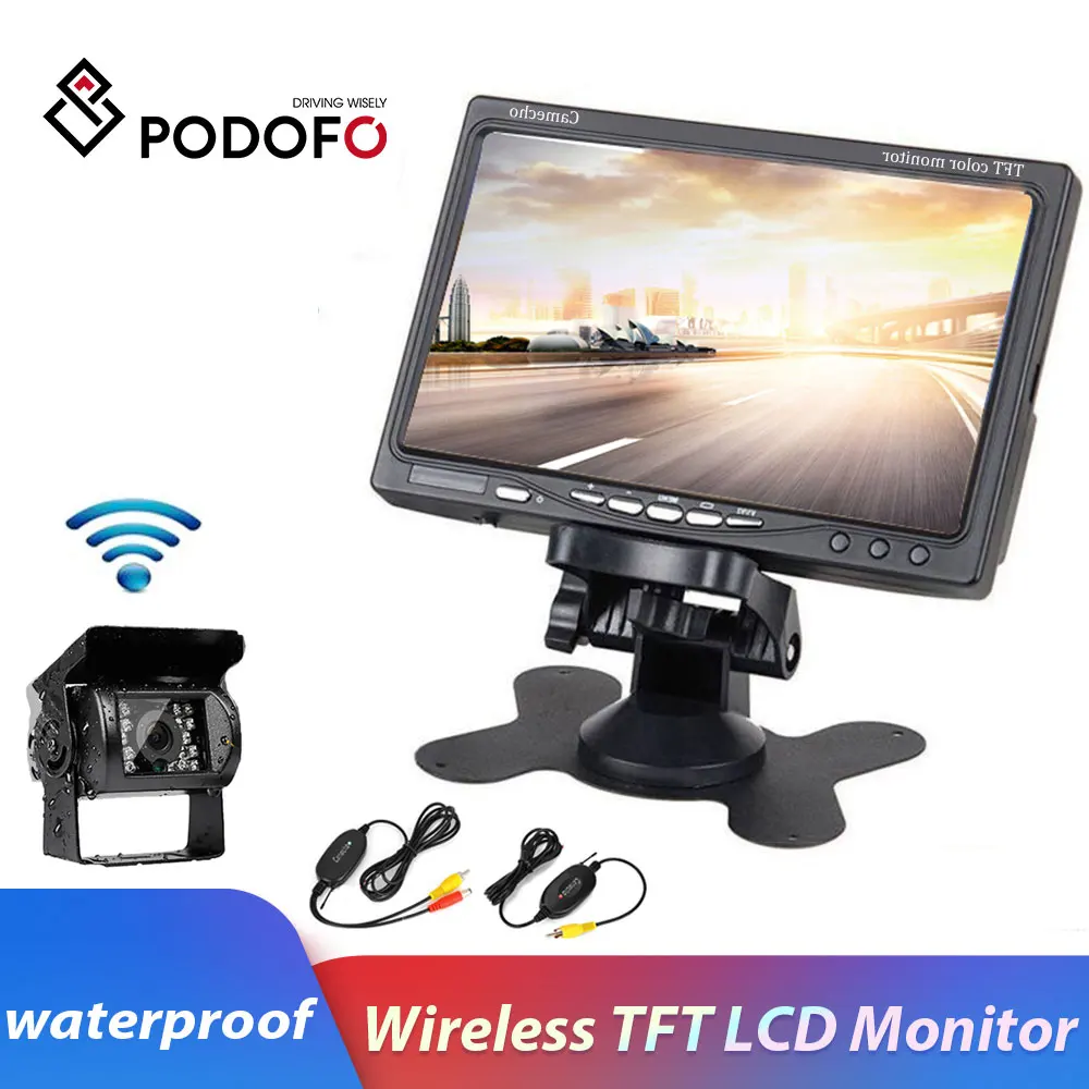 Podofo 12V 24V Wireless Car Rear View Backup Camera IR Night Vision Kit + 7" TFT LCD Monitor For Tr
