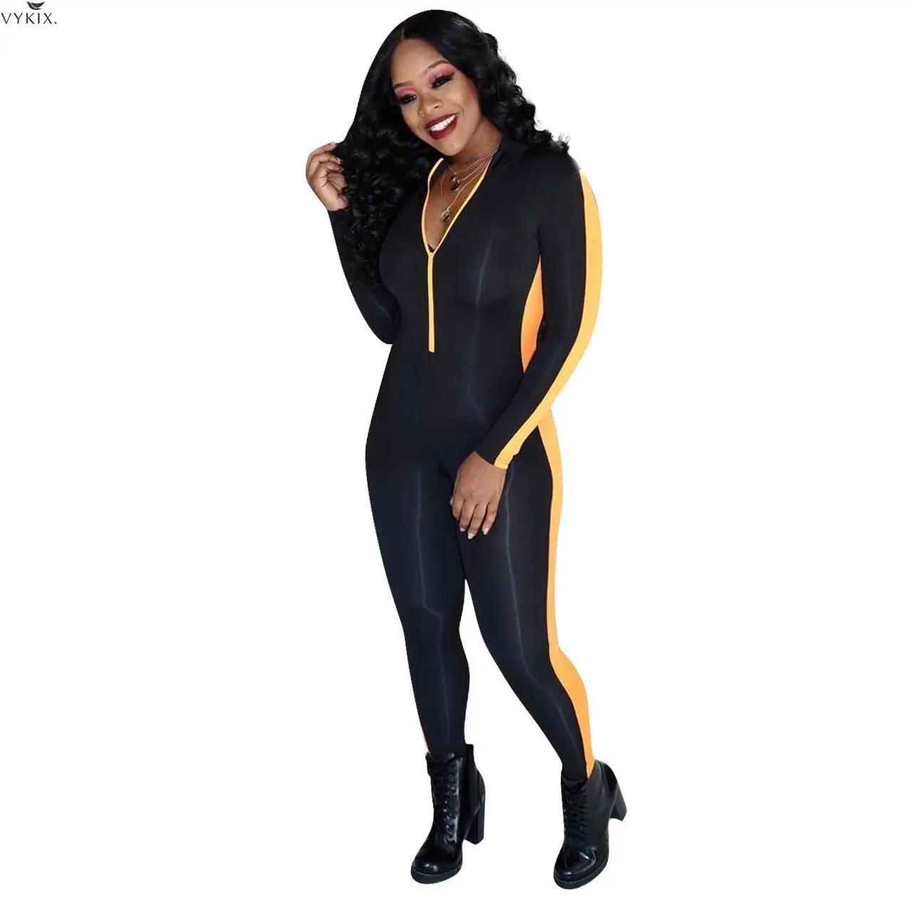 Women Jumpsuits Party Full Sleeve Patchwork Sexy Zipper Rompers Night Club Party Outfits Skinny One