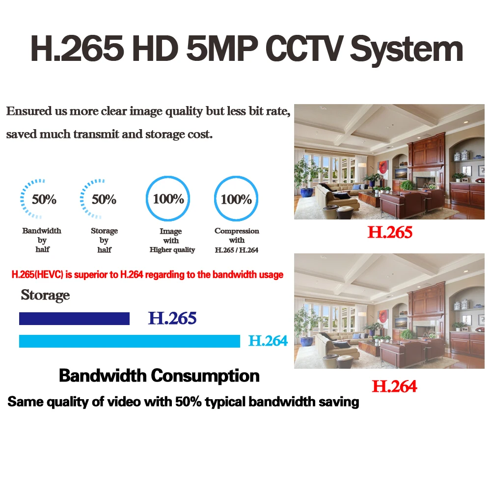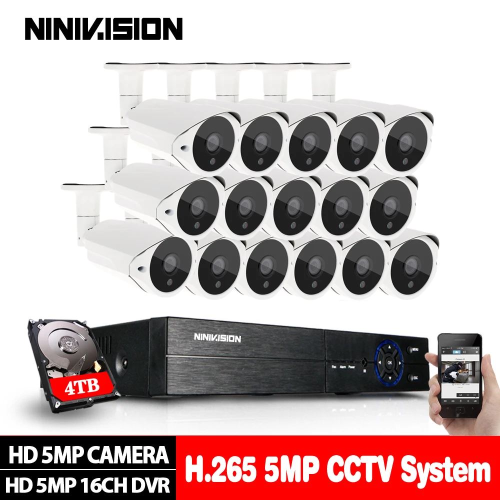 H.265+ 5MP Ultra HD 16CH DVR CCTV Security System Outdoor 5MP EXIR Night Vision Camera Metal Video